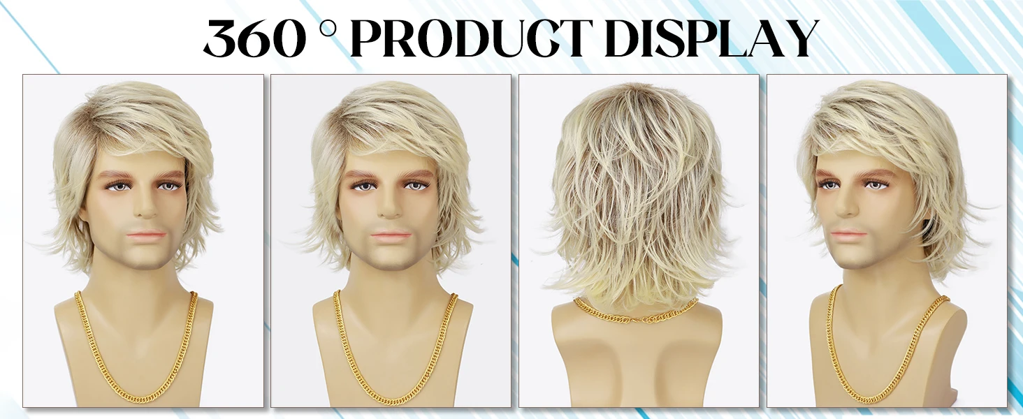 Synthetic Mens Hair Wig Short Blonde Layered Heat Resistant Wigs for Male Daily Party Cosplay Costume Halloween Use