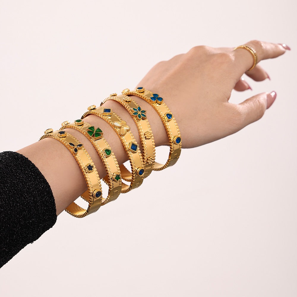 18K gold four-leaf flower inlaid gemstone design exquisite fashion bracelet
