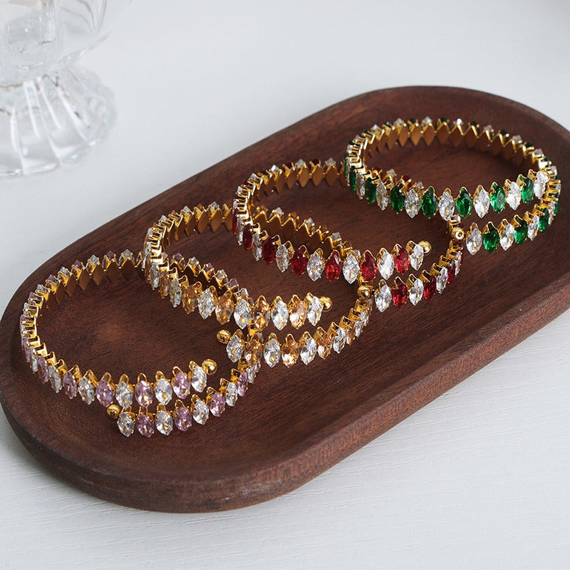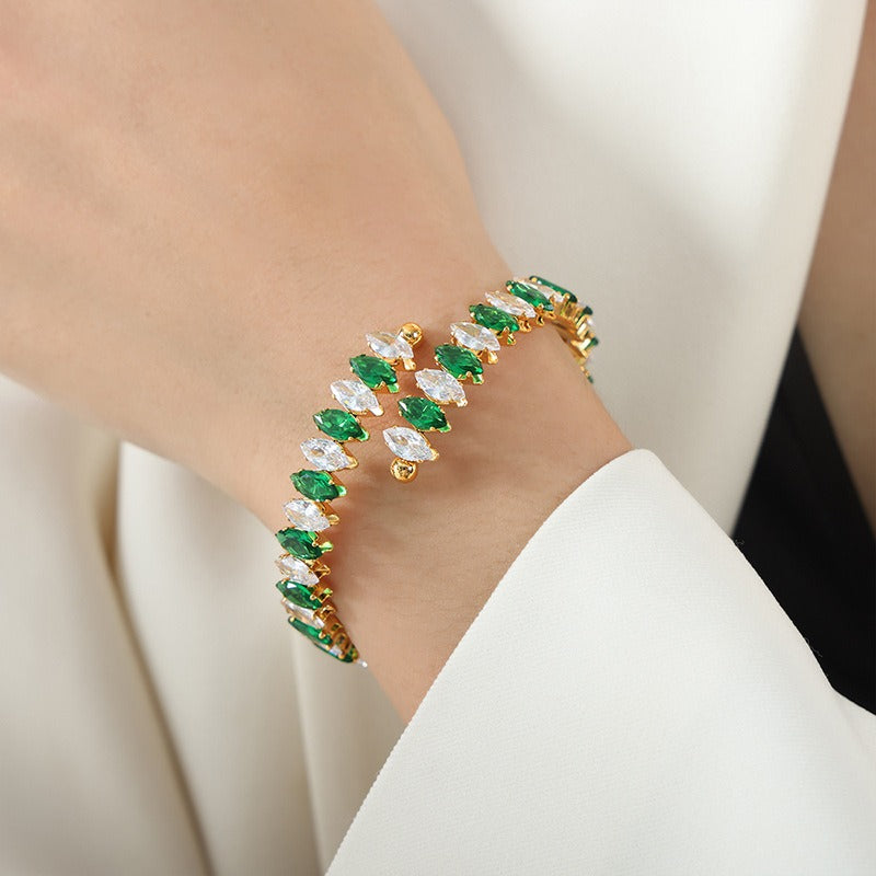 This bracelet is exquisite and dazzling, showing an unparalleled sense of luxury. Each gemstone is carefully selected and inlaid with the luster of 18K gold, making the whole bracelet more dazzling and becoming a symbol of the wearer's taste and elegance.