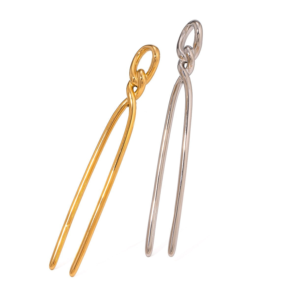 Geometric shape design: The design of this hair accessory is inspired by geometric forms. Through the clever combination of U-shaped and oval, it presents a very artistic visual effect. The hollow oval at the top and the knot shape below are intertwined, perfectly integrating modern art and elegant temperament.