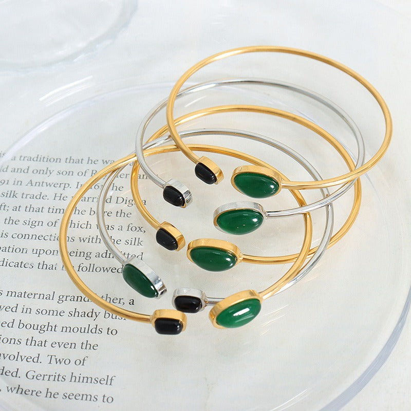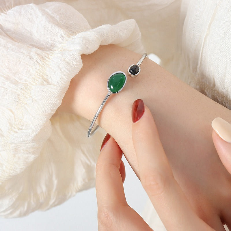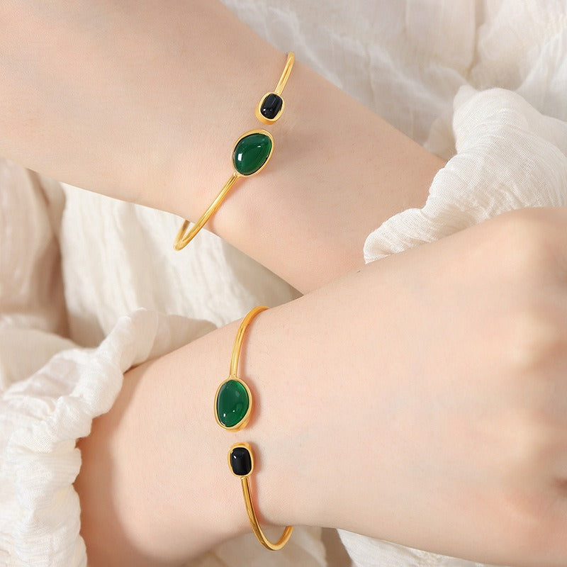 The two ends of the bracelet are inlaid with two gems, one large and one small, respectively, inspired by the shape of classical palace jewelry, staggered and orderly, showing an elegant and retro atmosphere.