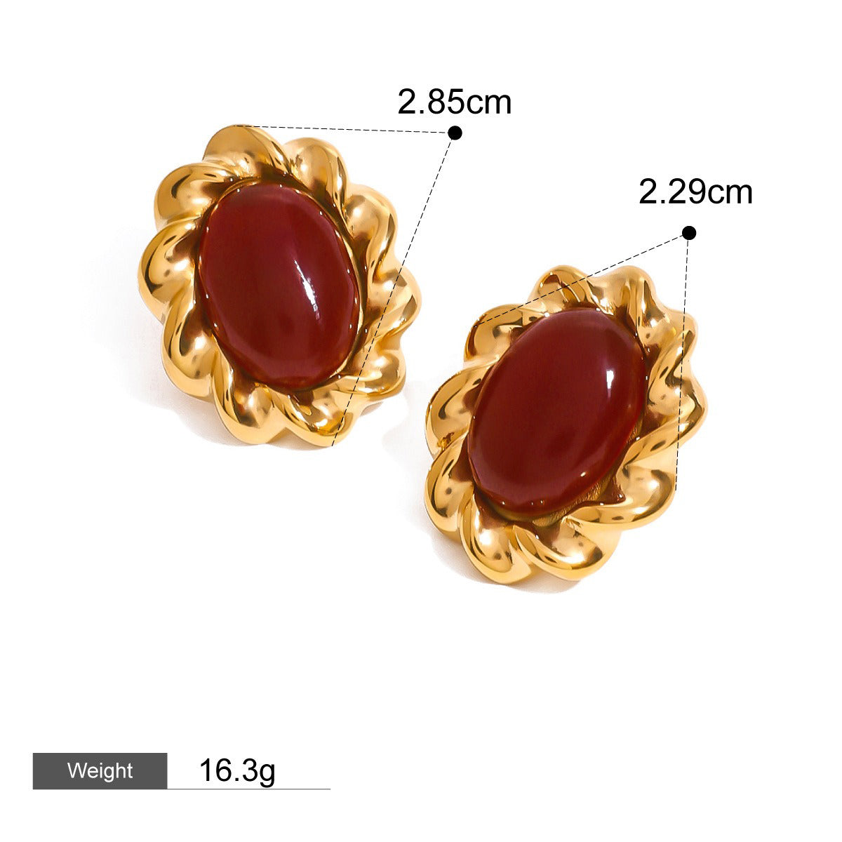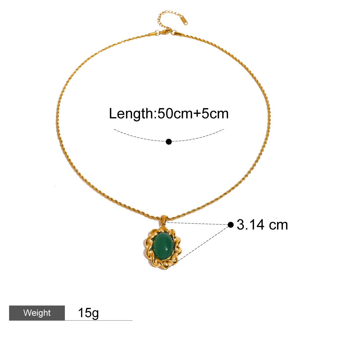 This earring necklace set combines the elegance of oval gems with the unique texture of twisted patterns, showing unparalleled high-end and modern fashion. Both the earrings and necklaces are designed with exquisite oval gem inlays. The bright light and the luster of 18K gold complement each other, highlighting the sense of luxury and taste. The design details of the twisted pattern add a sense of layering and dynamics to the overall look, making each piece of jewelry full of artistic atmosphere. Whether it is daily wear or special occasions, they can be perfectly matched to enhance the wearer's temperament and charm.