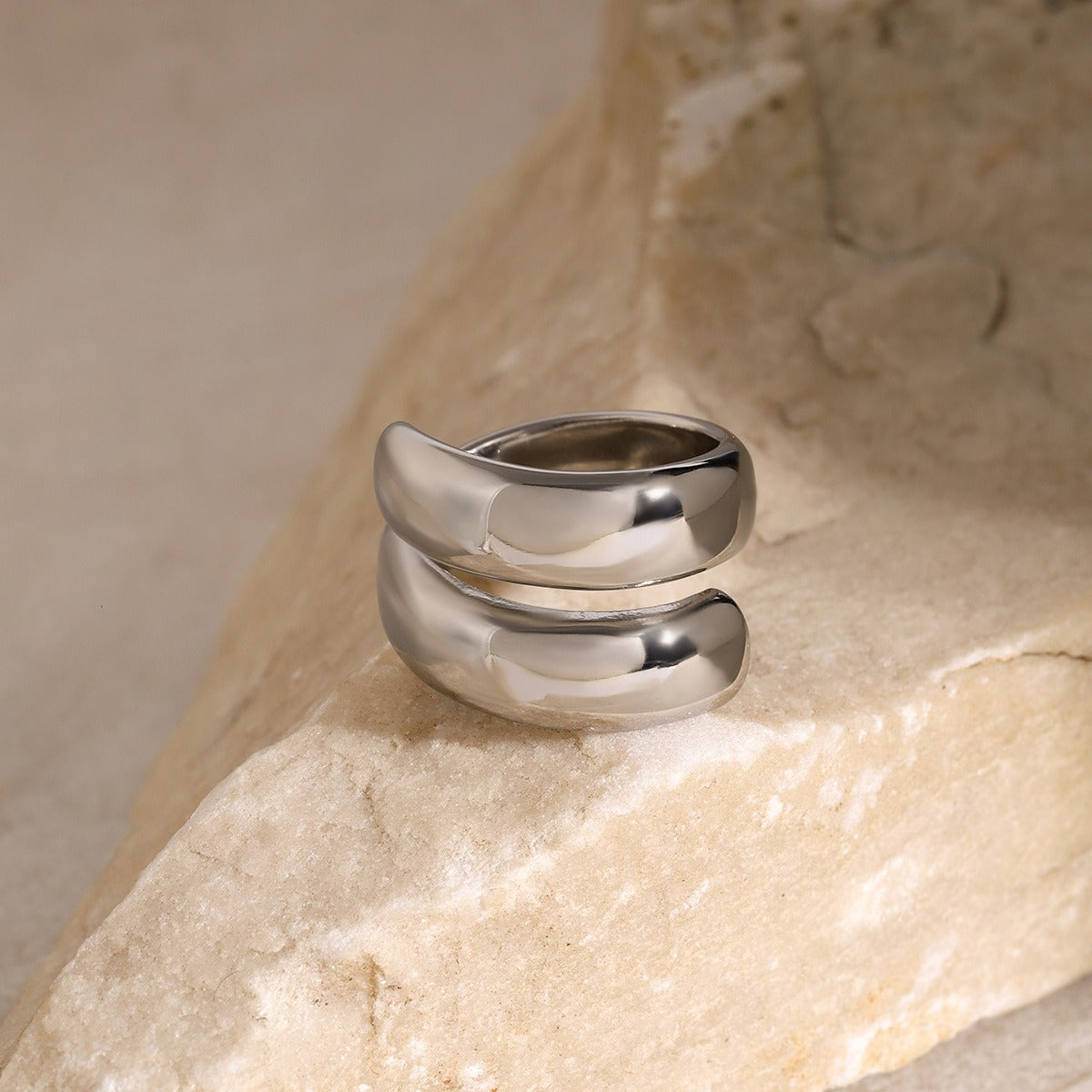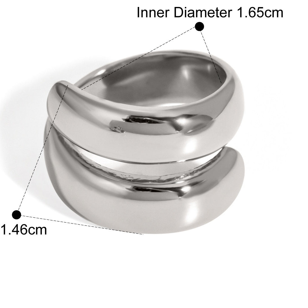 The ring adopts a double-layer design, forming a two-ring structure superimposed on each other, adding visual layering and a three-dimensional sense. This design is not only modern but also shows a simple and atmospheric style.