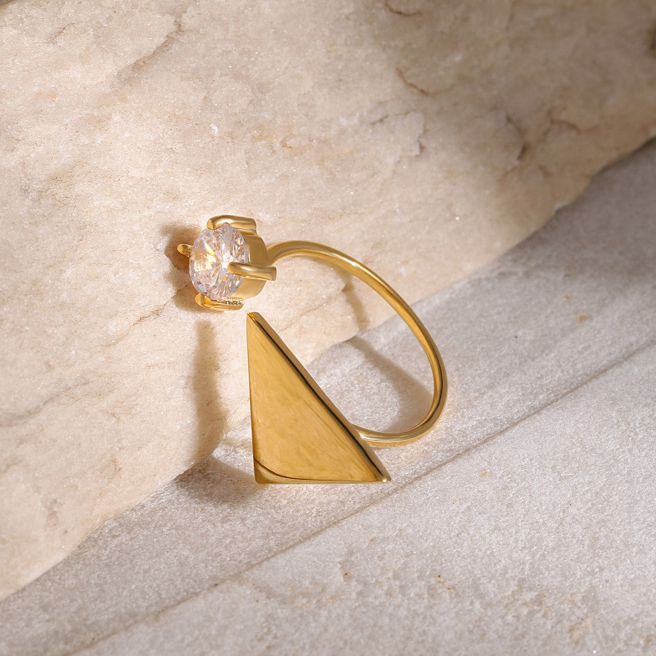 18K gold simple and atmospheric triangle with round gemstone open design ring