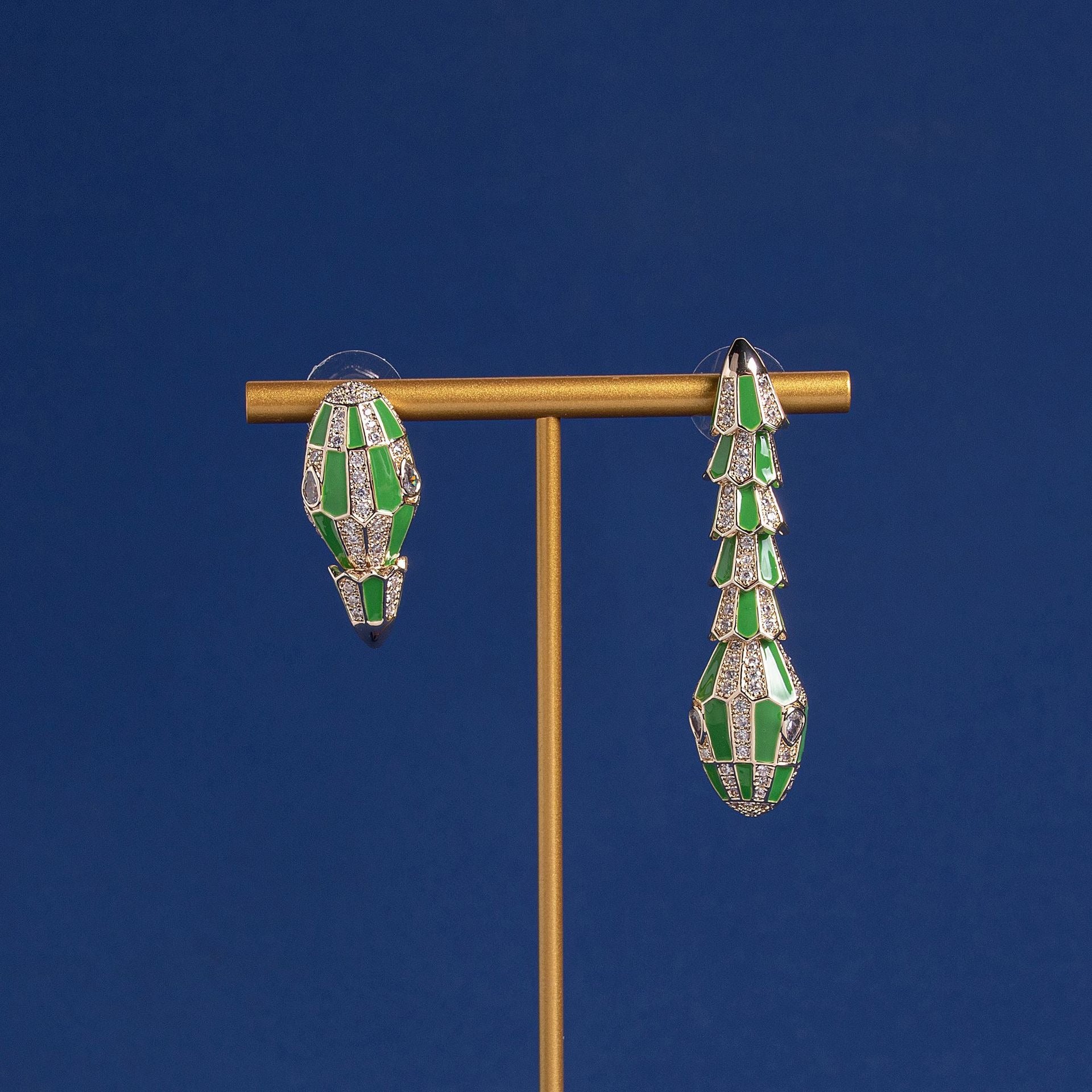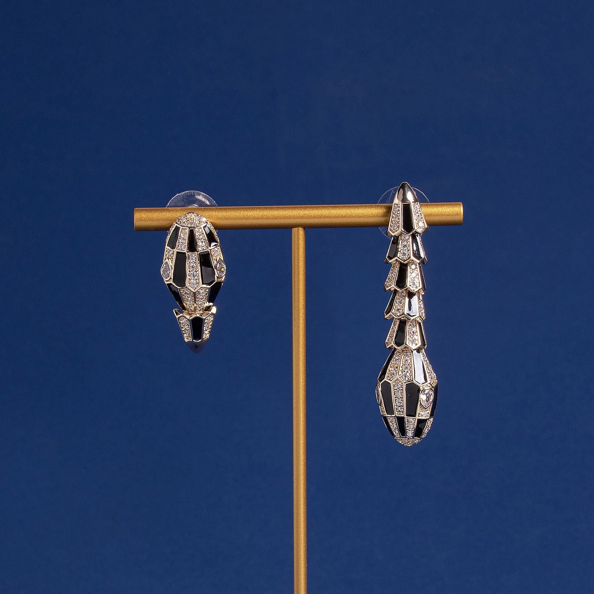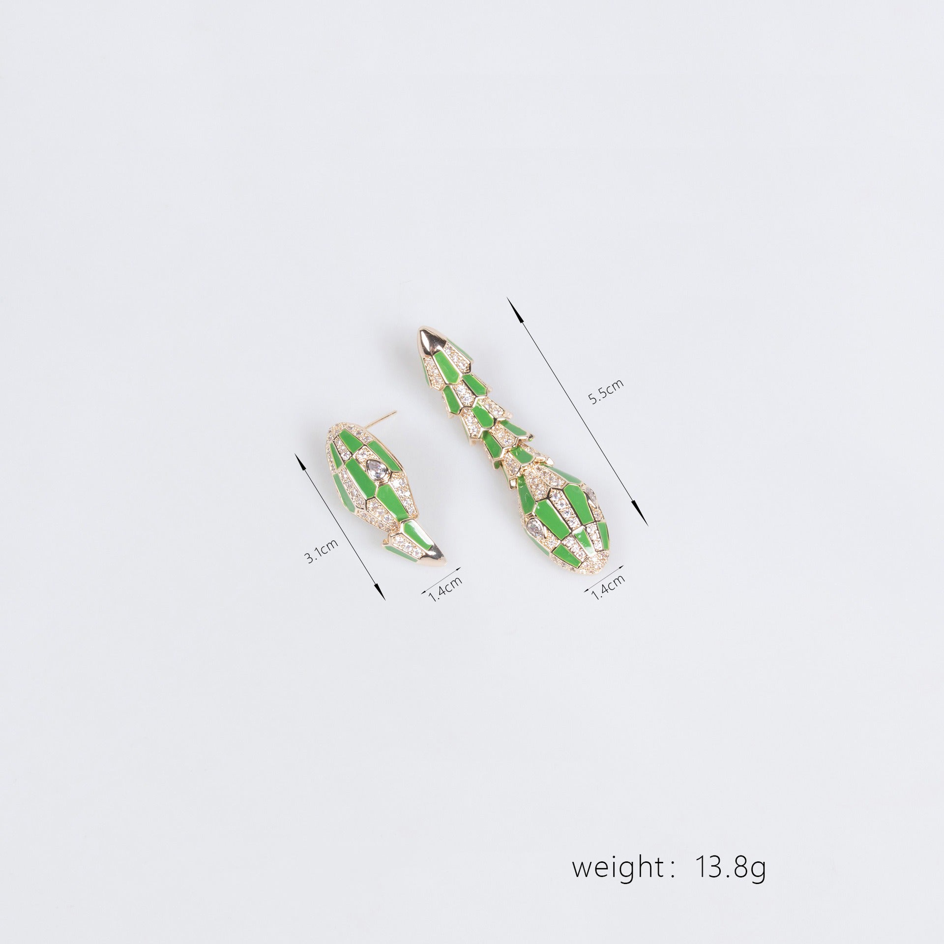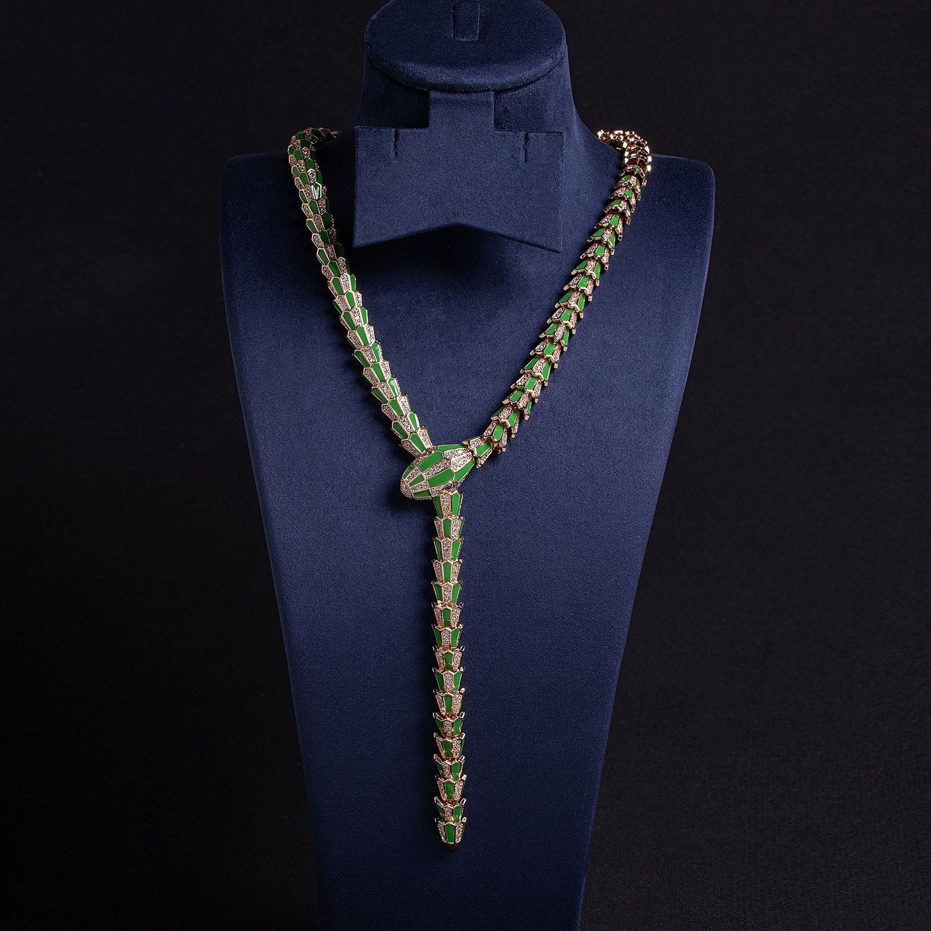 The necklace and earrings are both designed in snake shape, with smooth and winding lines, full of tension and shape. The snake body is cleverly inlaid with exquisite gems, with a strong sense of layering, dazzling, and presenting a fashionable effect with great visual impact.
