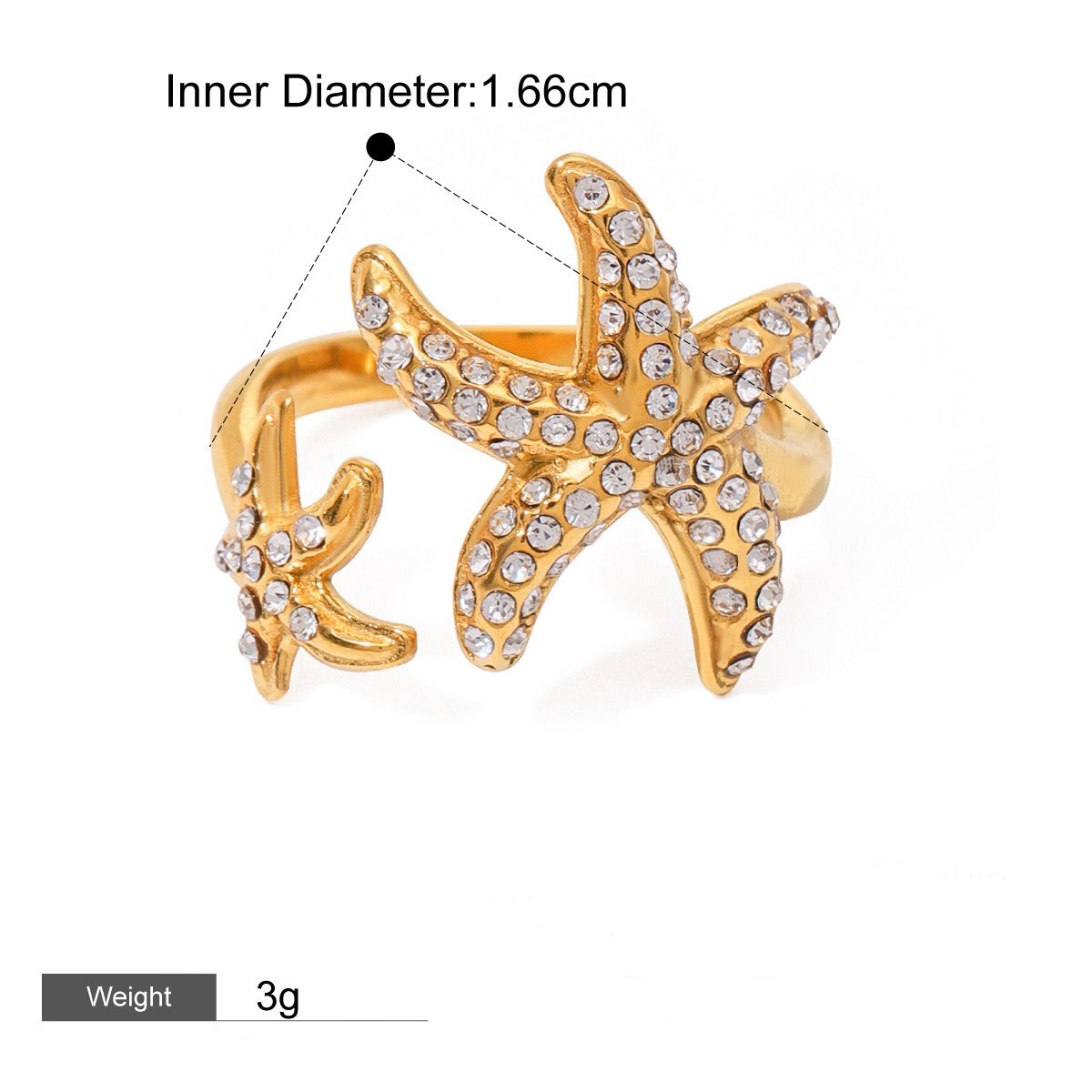 Diamond-inlaid design: The starfish shape of the ring is inlaid with exquisite diamonds, and the luster of the diamonds is more dazzling against the backdrop of gold. The embellishment of diamonds not only adds to the luxury of the ring but also gives it a high visual impact.