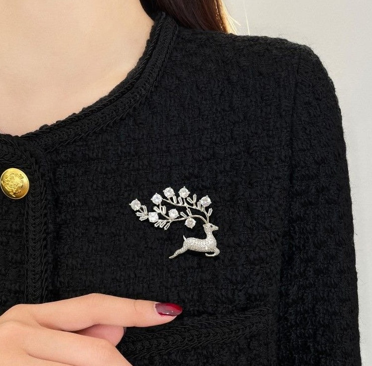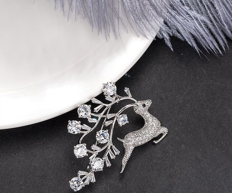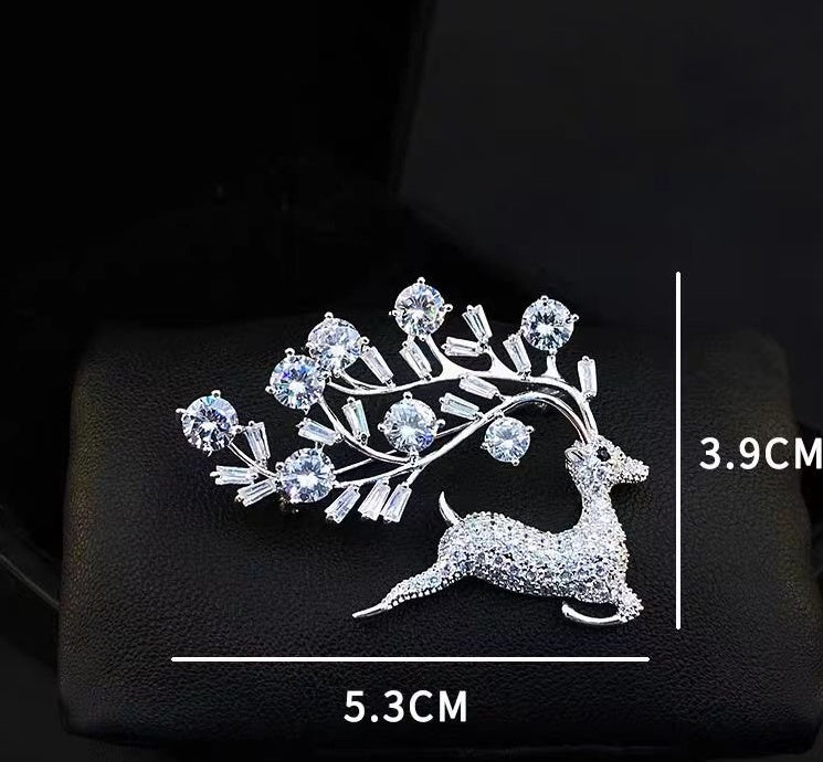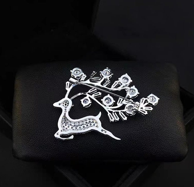 Product Name: 2pc"With You All the Way" Sparkling Zirconia Deer Brooch, a versatile autumn and winter clothing pin chest flower (preferred Christmas themed accessory).