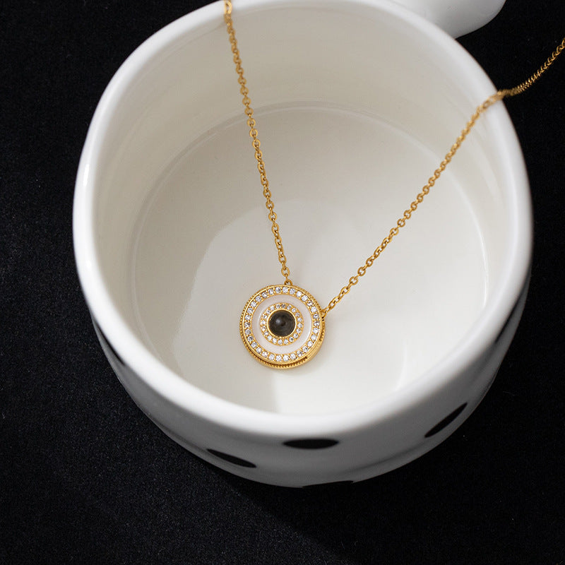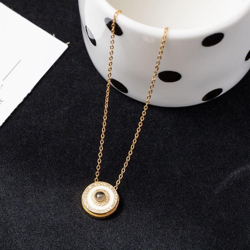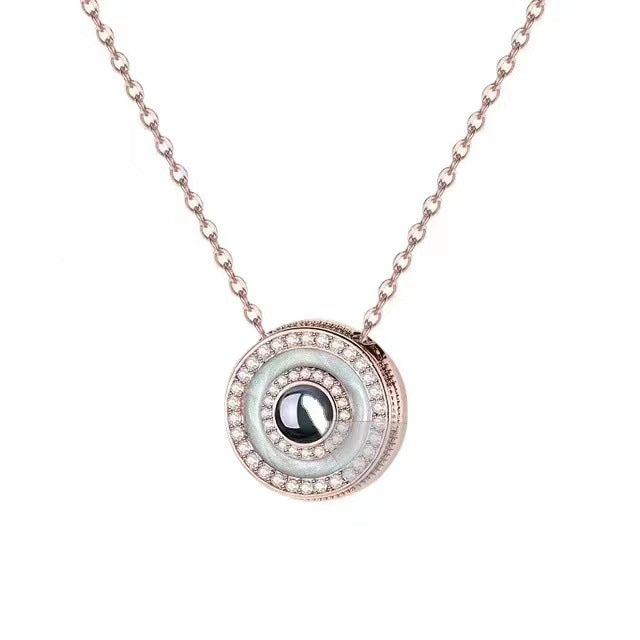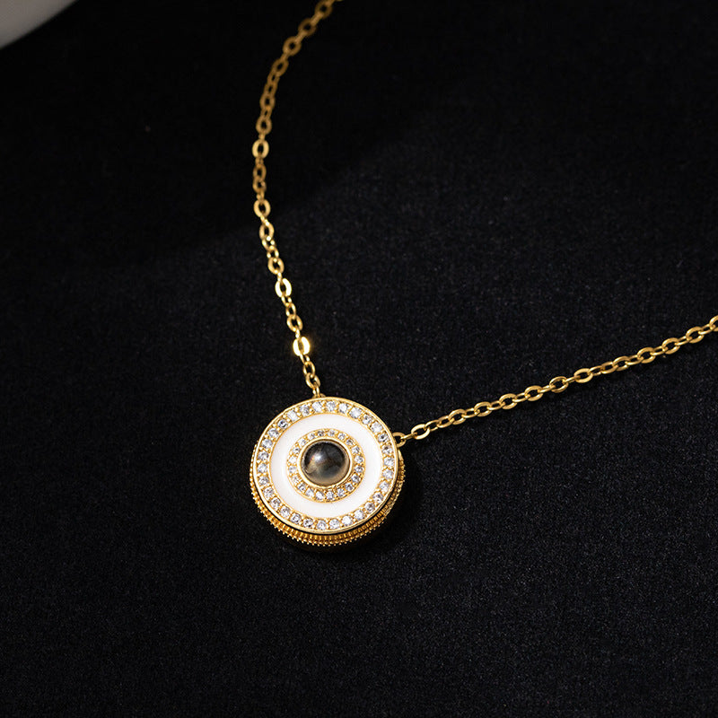 Welcome to the world of dainty fashion, and discover our round double diamond projection necklace. A symbol of nobility and elegance, this necklace combines the magnificence of diamonds and the uniqueness of projection technology, making your precious memories and personalized messages shine in the light.