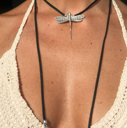 Dragonfly Alloy Velvet Necklace Distressed Leather Rope Pendant Ornaments