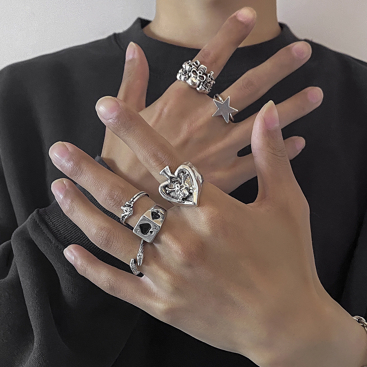 Fashion Skull/Snake/Ace of Spades/Pentagon Geometric Ring