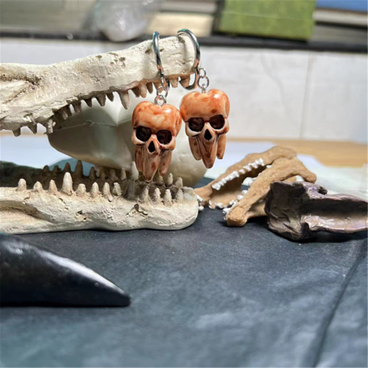 Product information: Color: stainless steel earrings Applicable people: Unisex Material: Plastic/resin Shape: Geometric Popular element: Devil Style: Retro