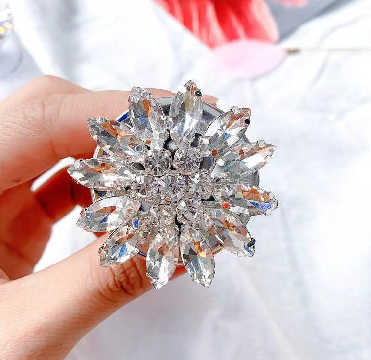 Product Name: South Korean Ins Super Fire White Super Flash Water Diamond Phone Stand (DIY Ring Rotating Universal Shining Base/Multi functional Flower Gem Support Stand Lazy Artifact).