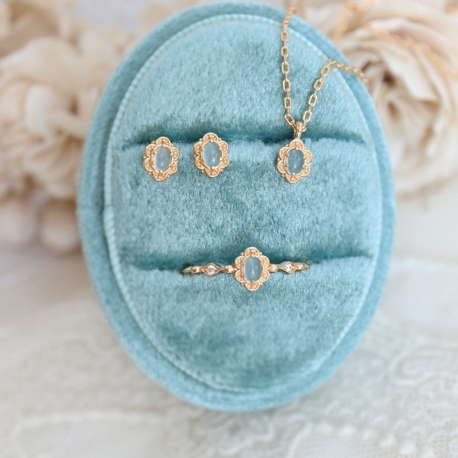 Natural Aquamarine Same Style Gold Plated Ring Necklace Ear Studs Female Accessories
