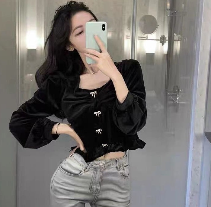 Inlaid with artificial crystals, using sparkling diamond inlay technology to outline the bow outline, paired with a central pearl embellishment, reflecting a brilliant luster and showcasing a high-end texture.