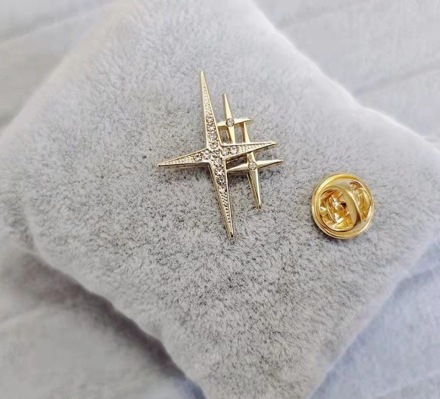 Product Name: European and American retro metal style diamond studded star brooch (multifunctional anti glare buckle/collar pin accessory).