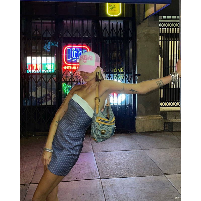 Fishbone Striped Sheath Lapel Tube Top Dress For Women