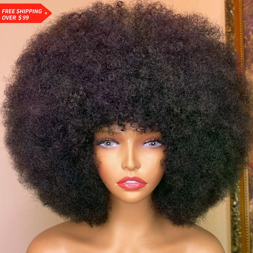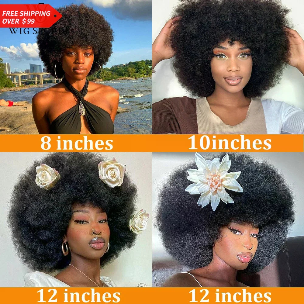 Sytle: Short Afro Kinky Curly Human Hair Wigs Natural Color