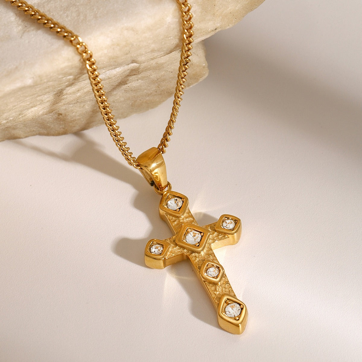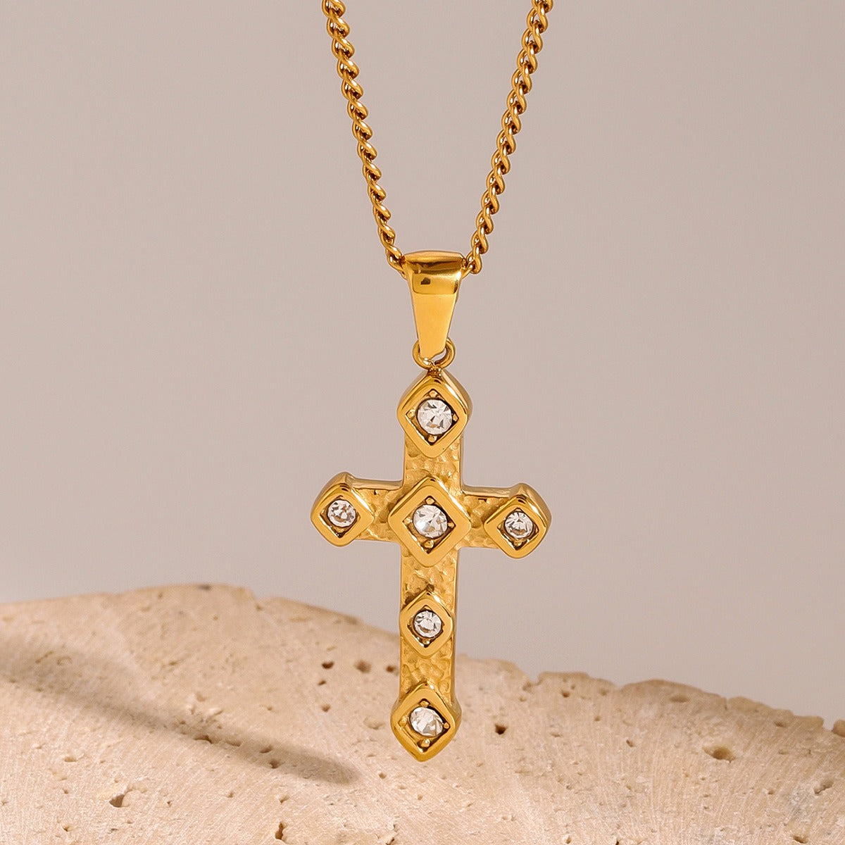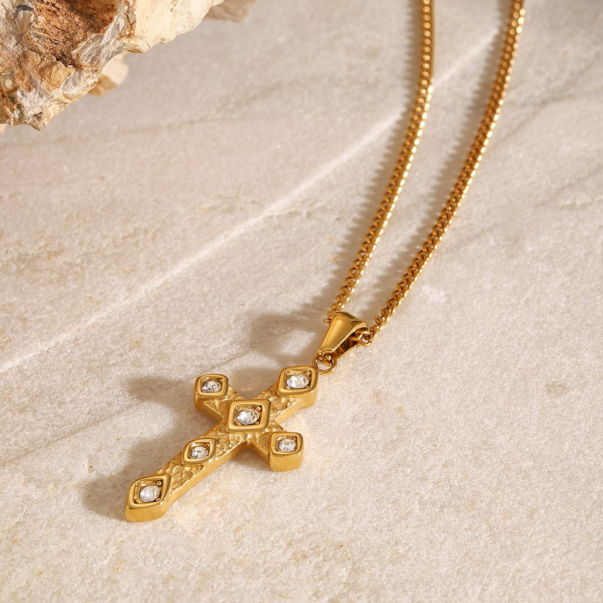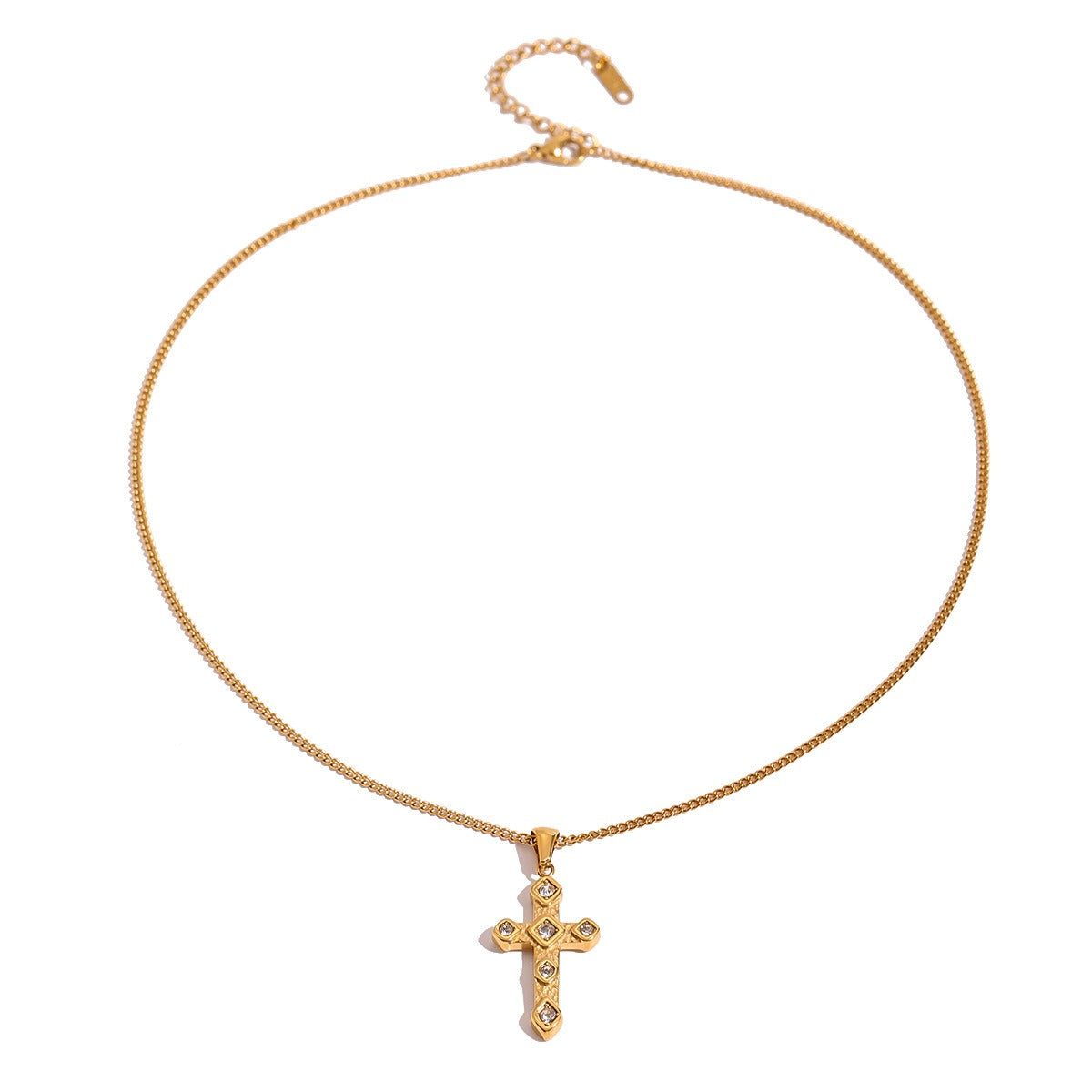 This necklace, with its classic cross shape and shining diamond inlay, shows the perfect combination of unique religious symbols and modern fashion, exuding unparalleled nobility and elegance.