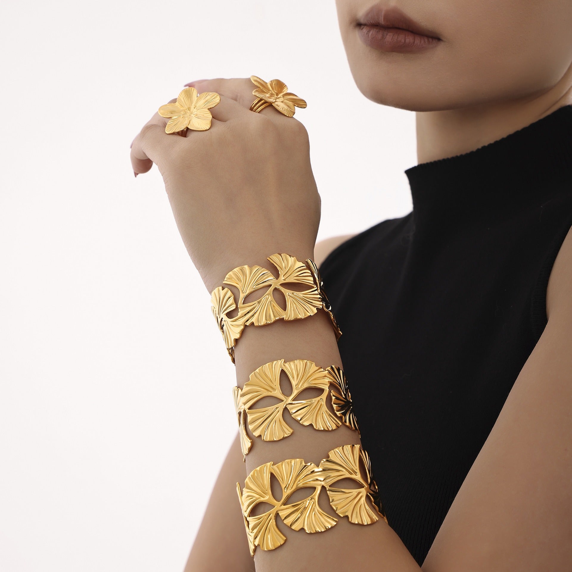 The leaves are hollowed out to make the overall shape light and agile. At the same time, the delicate texture on the ginkgo leaves is meticulous, adding three-dimensionality and artistic beauty to the bracelet.