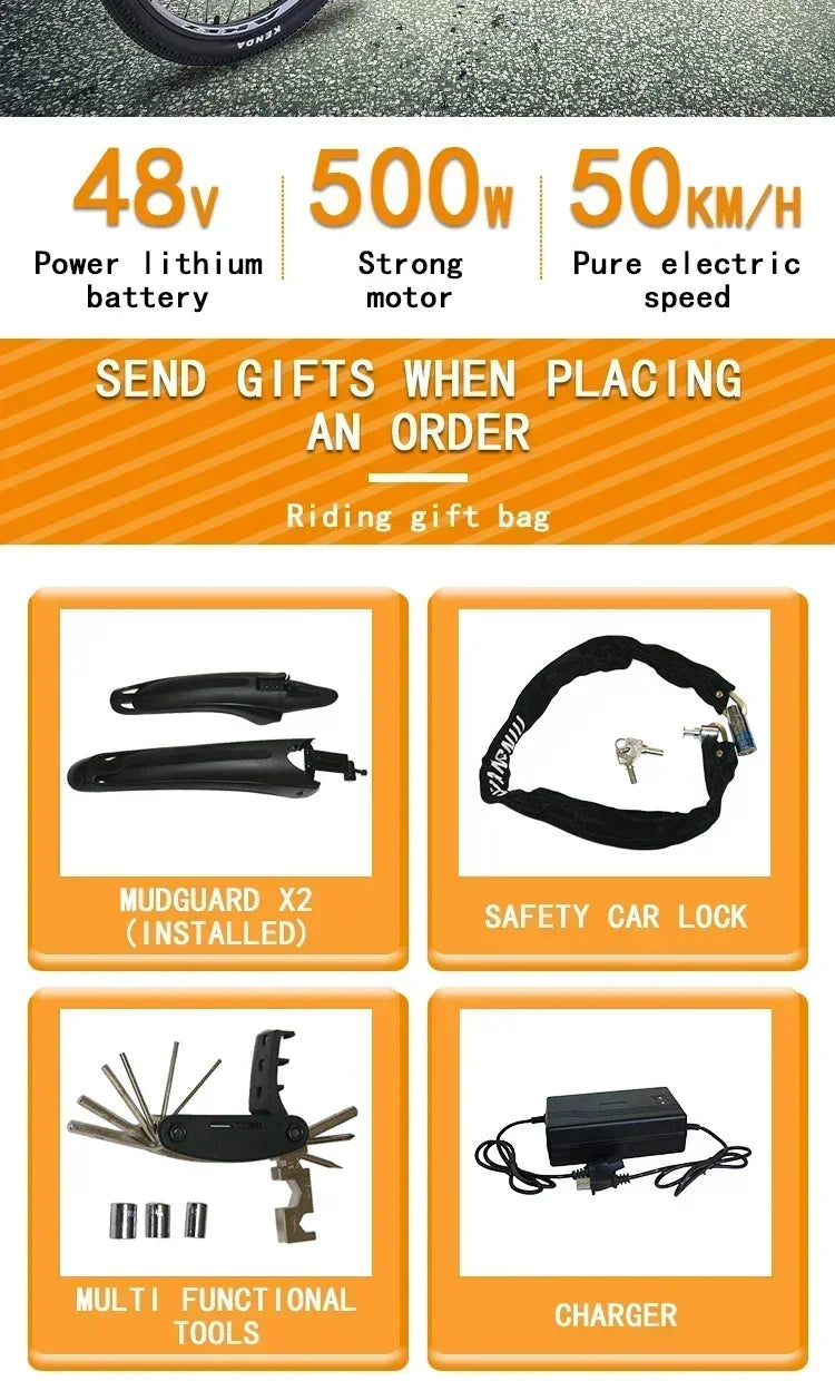 AKEZ Mountain Electric bicycle 500W Motor 48V13AH Lithium battery 50KM/H Adult Electric Bike 27speed urban road electric bicycle
